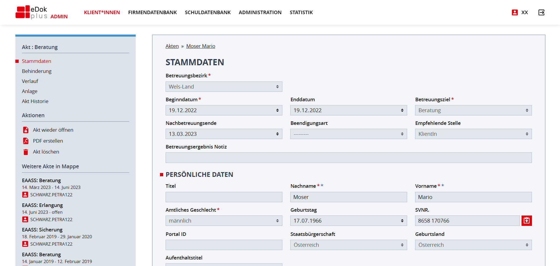 Einhaltung von Sicherheitsbestimmungen | Sämtliche erfassten Daten sind elektronisch archiviert. Das Hosting erfolgt in österreichischen Rechenzentren unter Einhaltung sicherheitsrelevanter Vorgaben und Bestimmungen (vgl. DSGVO, NIS-2). Die Archivierung von Handakten ist nicht mehr erforderlich. |