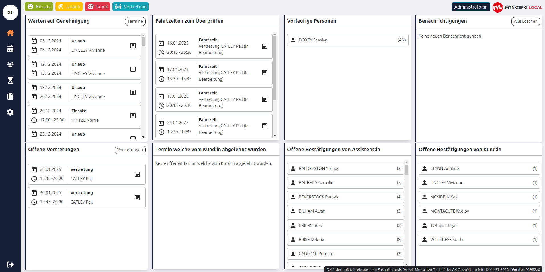 Durch die Individualentwicklung konnten sämtliche Rahmenbedingungen berücksichtigt werden. So sind z.B. die komplexen Urlaubsregelungen genauso mitbedacht wie individuelle Zeitkonten und Auslastung der Assistenzen.